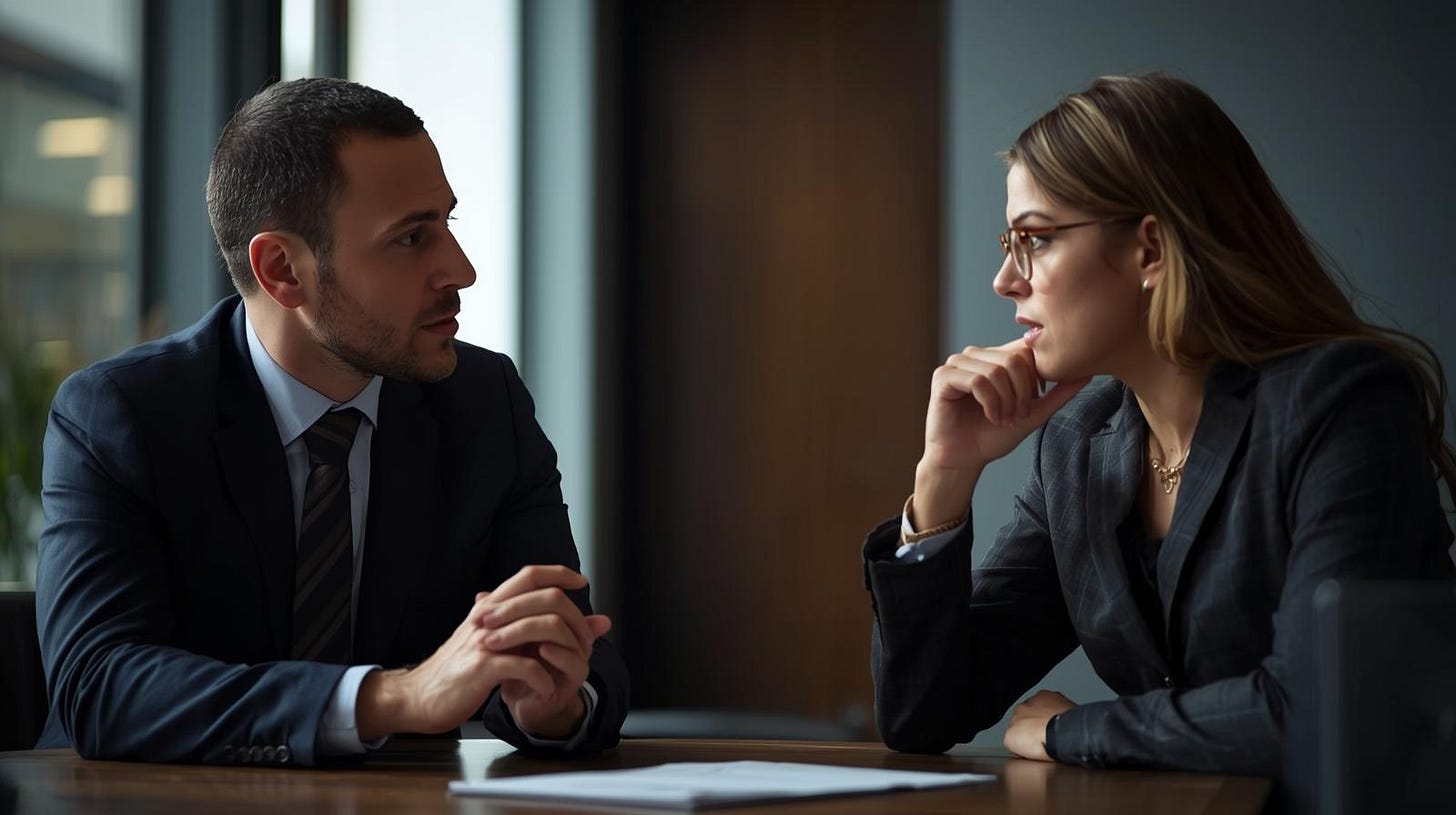 The discussion then explores to see if her team was indeed hitting the milestones and explore her point of view regarding the interactions with Alex.